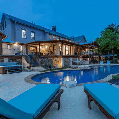 Includes: 6.52 acres with 600+ feet of South San Gabriel River frontage, 7,550 square feet layout with7 bedrooms and 7 bathrooms, chef’s kitchen with a generous island and butler’s pantry, luxurious master suite with steam shower and jetted tub, multiple fireplaces, heating saltwater pool with waterfall, covered outdoor living facilities, 6-car garage with storage, and separate Airbnb-ready apartment.